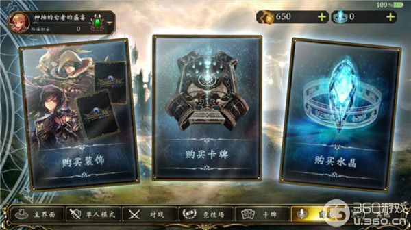 商店内可购买装饰、卡包以及水晶。装饰大致为购买不同类别的卡背以及主站者造型,需要消耗金币以及相对应的水晶。