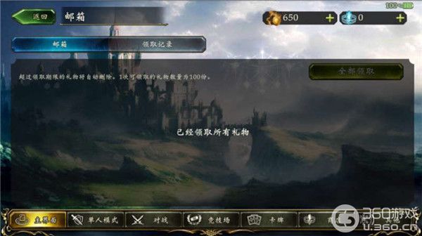 2.邮箱:是领取游戏活动礼包的地方。领取记录可以查询你目前领取过的礼物。