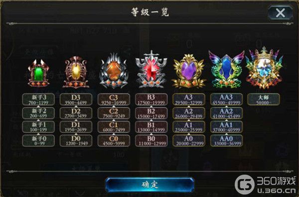阶位分为新手、D、C、B、A、AA、大师等级别。