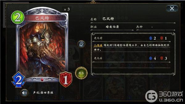 【巴风特】作为我们的前期曲线,2费2/1的身材虽然并不优质,但是它可以帮助我们更快的上手【幻影猫】,也可以让我们在游戏开始时并不需要留【幻影猫】在手。