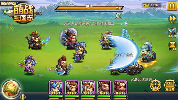 三国历史相信大家都不会陌生,即便小说和电视剧都没看过,里面的经典桥段也是知道的。在《萌战三国志》征战模式中,玩家们大可以对这些桥段尽情的吐槽。轻点屏幕右下方的【发弹幕】,将你心中所想发出来,跟所有玩家一起调侃逗乐。当然不想看弹幕的玩家也可以选择屏蔽弹幕,享受纯粹战斗。