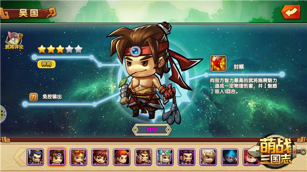 【简评】历史上的甘宁是个率性而为的人,“不受控制”是他最大的特点,在《萌战三国志》中,他同样免疫控制,这让他在战场中更加来去自如。此外甘宁有多个技能是对方智将作为针对目标的,而智将通常是队伍的核心AOE伤害来源,因此他的存在将大大威胁敌方的输出能力,作为一个搅局者是十分合格的了!