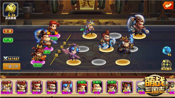 当然,如果你对武将搭配不是很了解,或是自信可以靠硬实力碾压一切,也可以点击“一键上阵”按钮,让系统自动为你上阵武将。系统通常会选择武力值最高的五名武将上阵,并组成一个合适的阵法,节省玩家搭配武将的时间。
