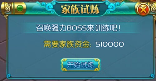 家族资金足够的情况下,族长、副族长和长老可以通过消耗一定数量的家族资金,开启家族试炼,召唤强力的家族BOSS,击败它之后,可获得法宝,血统碎片,商城道具哦!