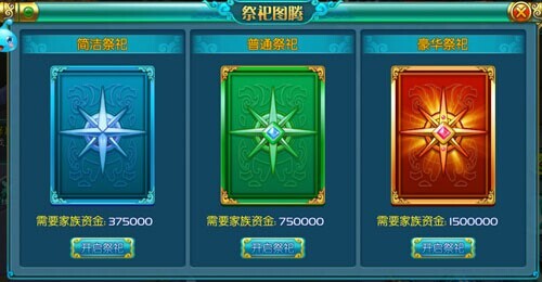 族长、副族长和长老可以通过使用家族资金,开启不同效果的祭祀,开启后,玩家在家族领地的图腾处即可获得大量经验。