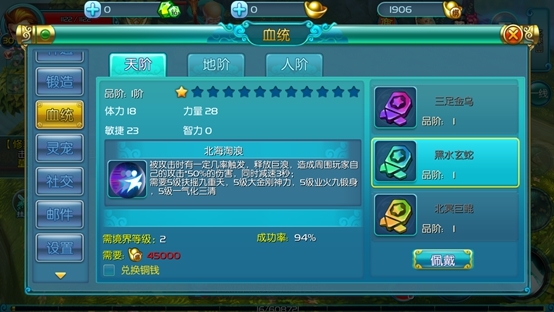 1.血统升阶:通过对血统阶级的提升,使血统属性加成得到相应成长。