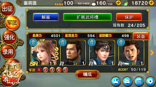 晋国武将在整个《真·三国无双 爆发》中的特技以恢复无双槽+攻防效果居多,所以是比较具有续航能力的团队,完全不用担心无双槽的消耗问题。如果抽到王元姬的玩家可以将其当做主力来培养,无论是武将还是副将的位置她都能够很好的胜任!如果你是文明皇后的忠实粉丝,那么小编将下面这套阵容推荐给你:胡烈拥有60秒内强化攻击的特技,令王元姬的普通攻击效果大增;文虎拥有小范围AOE技能,击中目标的同时恢复无双槽;而焦彝则提供武将和本阵的回血。