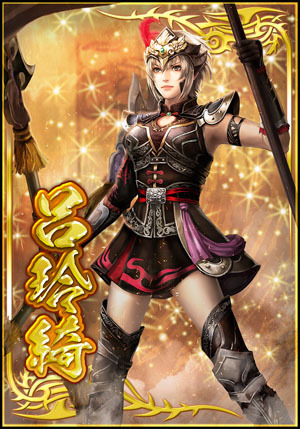 吕布的女儿。和父亲一样骁勇善战。吕布弑董卓后,被李傕、郭汜追逐出长安时,曾被抛弃不顾。后来被安全送回吕布身边。曾有过与袁术儿子政略婚姻的机会,只是最终没有实现。吕布被曹操讨灭后,也继续生存了下来。