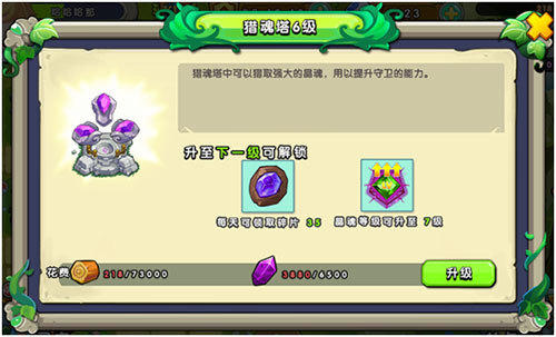 《魔灵保卫者》在守卫提升中,除了传统提升守卫属性系统,还加入【猎魂塔】特色提升功能系统,该建筑可以产出高属性晶魂,从而大幅度提升守卫属性。