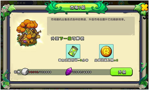 每次对建筑升级,可加快兌换次数恢复时间,并增加兌换次数上限。