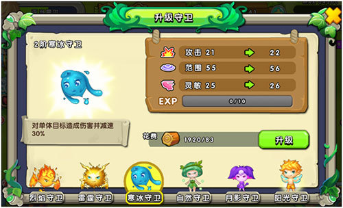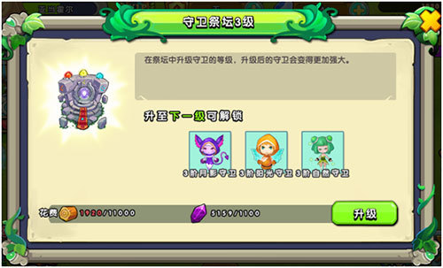 升级守卫需要大量木材提升,提升经验条满后,并可对守卫进行升阶。