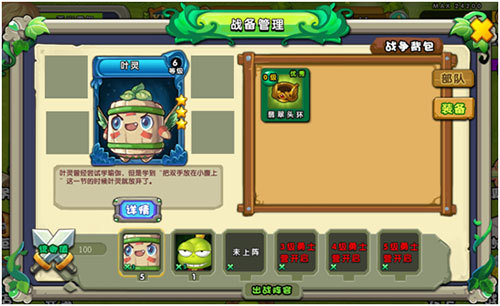 在现有部队可挑选上阵,并可查看部队星级及详情资料,可以对部队进行 “升阶”、“升级”等养成提升。