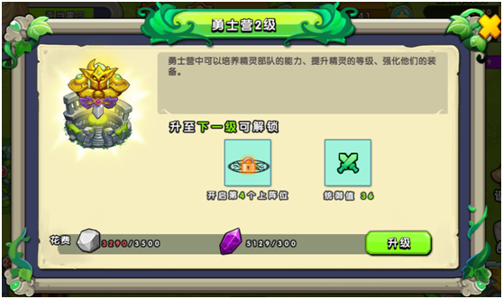 《魔灵保卫者》另一个主要核心玩法“逆塔防”的部队养成系统主要建立在【勇士营】该建筑内。