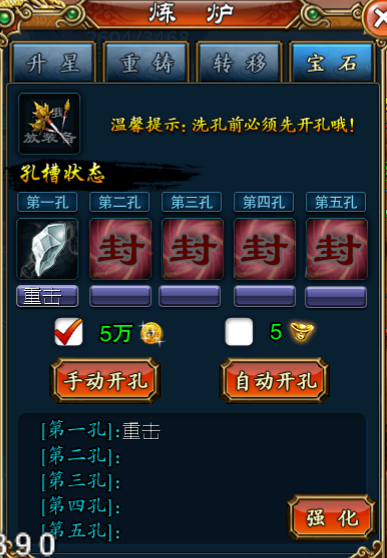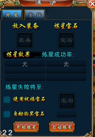 炼炉系统是指玩家可以对装备进行升星、合成、分解以及镶嵌宝石操作的系统。