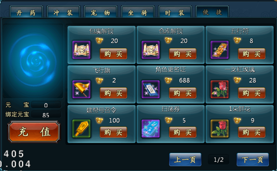 玩家可通过商城界面上的分页按钮寻找自己需要的道具。