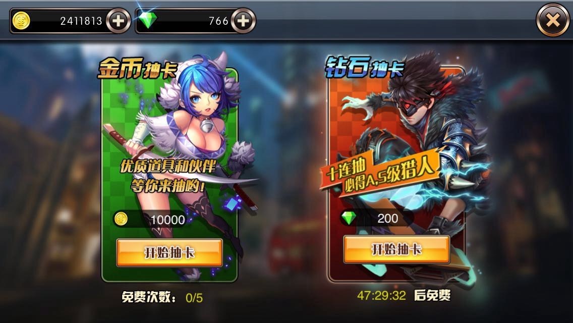 玩家登陆游戏后进入主城,点击召唤之门按钮,随即弹出抽卡界面,点击抽卡便有机会获得猎人了。