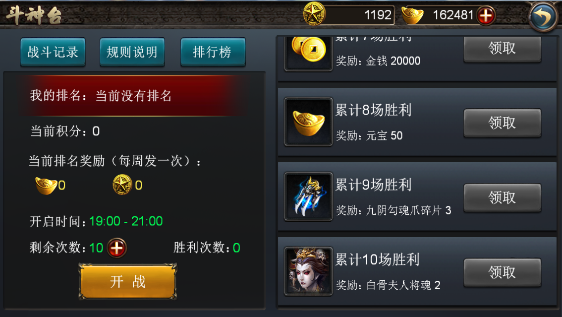 玩家每参加一场战斗都会获得一定积分。全服玩家进行排名,分数越高排名越高。