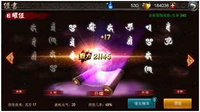 获得神将的途径也有许多,打副本就可以获得大量神将碎片,攒够碎片就可以激活神将了。更加简单的途径当然也是有的,不喜欢消耗体力打副本的玩家呢,可以通过幻境寻宝获得!有几率直接获得神品神将。装备神品神将可以激增上万战力哦~身后跟随一个撩人的妹子。