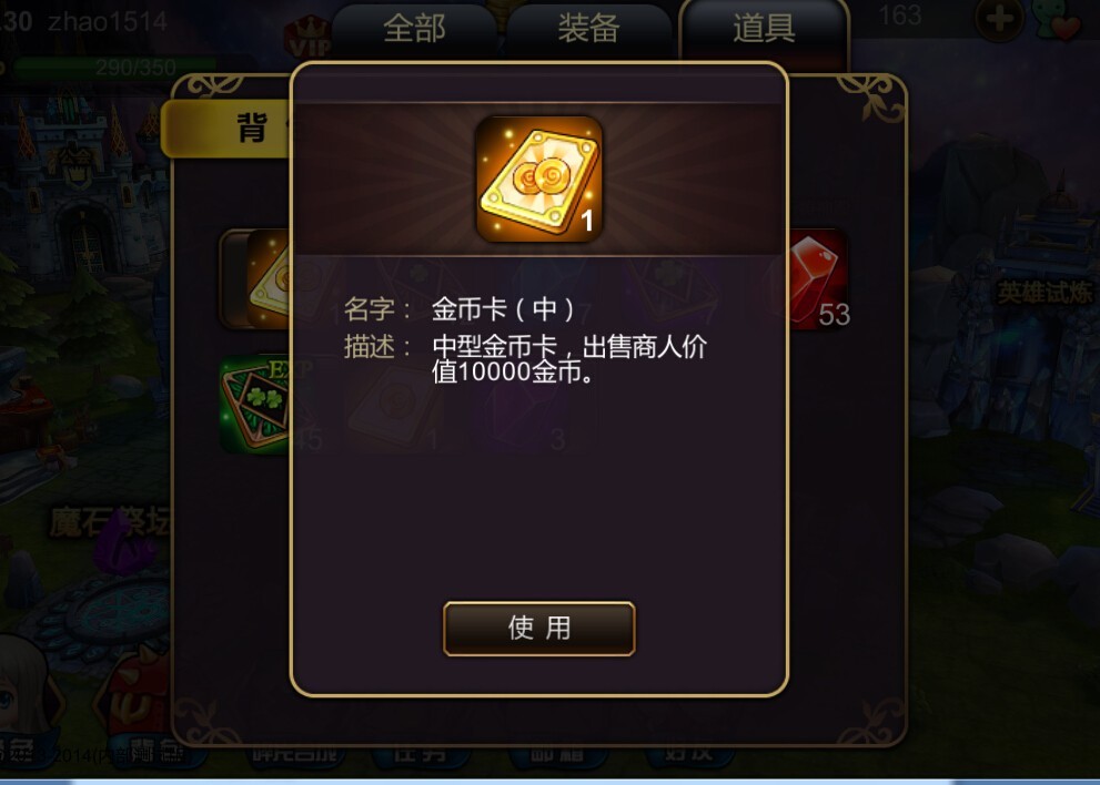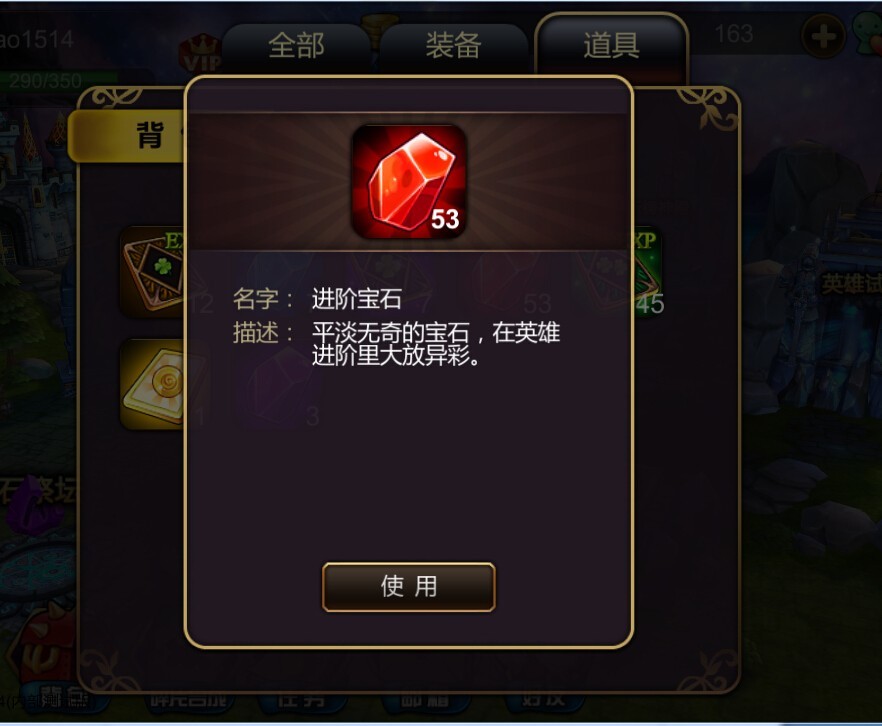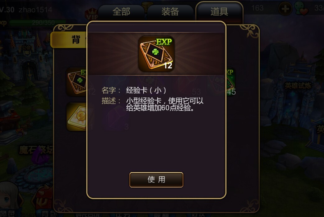 经验卡使用之后会让指定的英雄获得经验,从而使英雄升级。