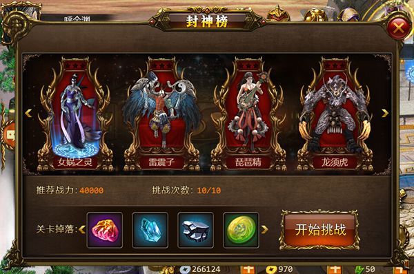 随着玩家等级的提高,玩家可以开通封神榜系统。在封神榜中,可以挑战各个大BOSS,获得装备进化材料,而且在系统中还会有奇遇,会有意想不到的收获哟。