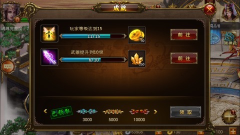 成就,在用户达到一定级别、获取一定的金币以后都有超值大礼包赠送;