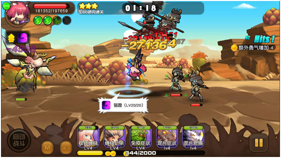 主人在战斗中可以随时切换上场宠物,并且可以通过消耗勇气值,释放宠物大招。