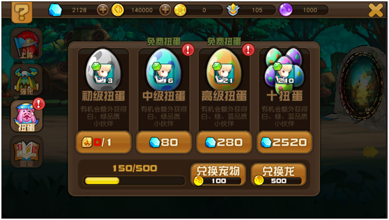 扭蛋抽取宠物,更可通过抽奖返还的兑换点数直接获得龙