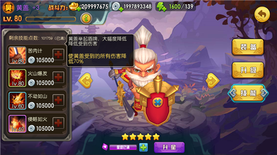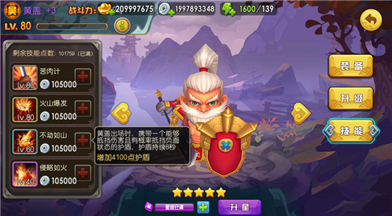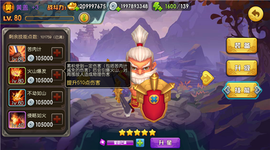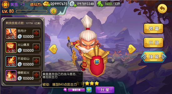 增加黄盖的攻击力,满级40点可加640点攻击。十分可观!