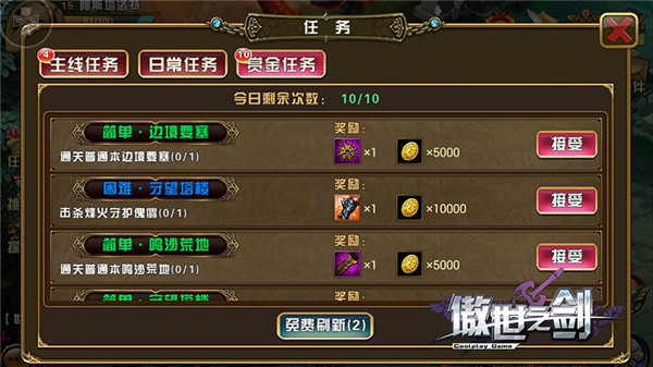 二、各类任务和副本。主线任务、日常任务都会送一定的金币,而赏金任务也建议把每天10次做满,不仅能获得金币,还能额外获得如星辰石等各类稀有道具奖励,不过扫荡不算数喔。
