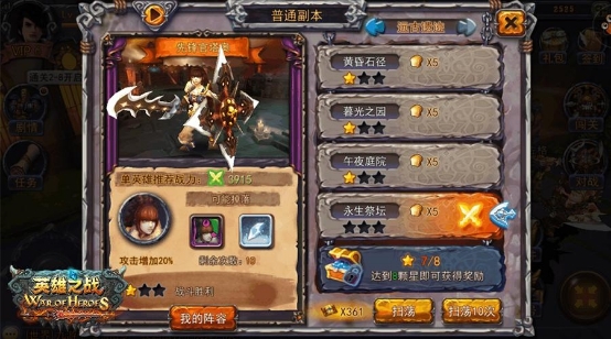 为了让各位看官更容易理解《英雄之战》无伤单挑BOSS的方式,小编采用了输出能力比较弱枪术师作为通关英雄。