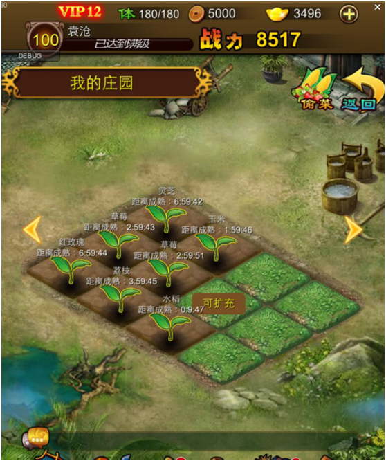 1、游戏中各种道具的获得渠道多种多样,玩家点击游戏中的“家园”系统,可选择性的进行种植