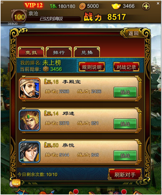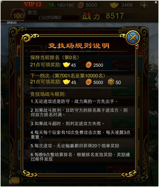 6、每天竞技场排名结算时,系统会根据你目前的排名给予更多的奖励哦