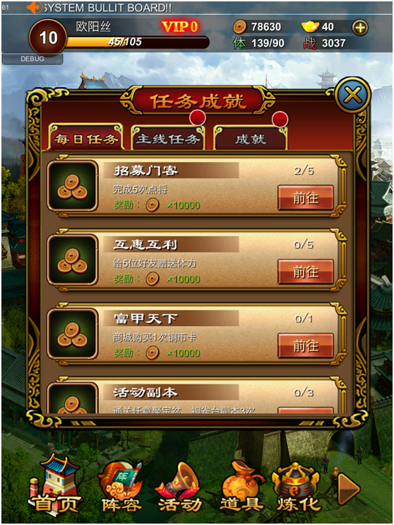 众多的成就奖励,有元宝也有丰厚的铜钱