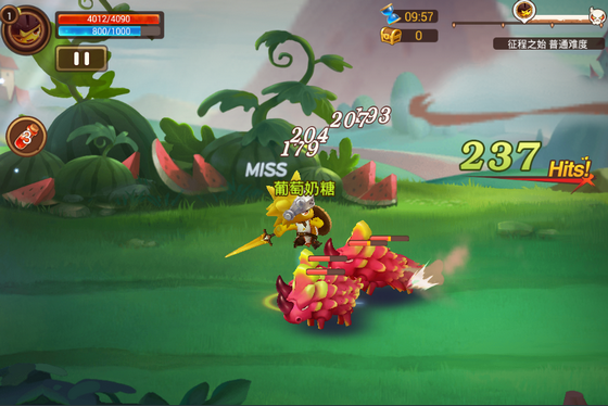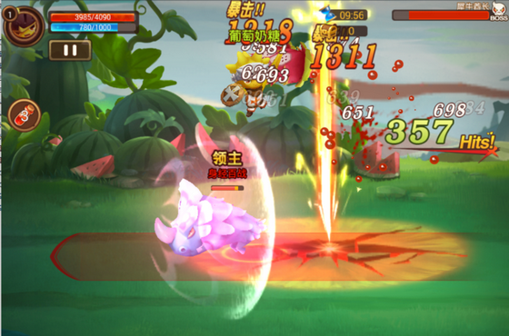 相较于其他二位擅长中远攻的角色来说,擅长近攻的榴莲武士在推本上稍有些慢,对于习惯了洋葱妹一路暴力胖揍怪们的葡萄来说,一开始还适应了好久。索性榴莲武士高防高攻,一路稳扎稳打下来,也是十分不错的。