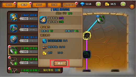4, 满足所有条件时,点击”激活“按钮,即可完成装备激活。