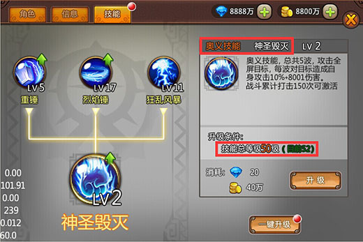 激活后的奥义技能,点击即可释放;全屏范围内的怪物NPC都会受到伤害,刷怪的绝对神器!