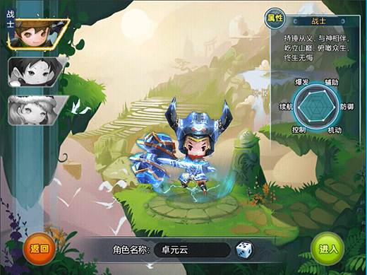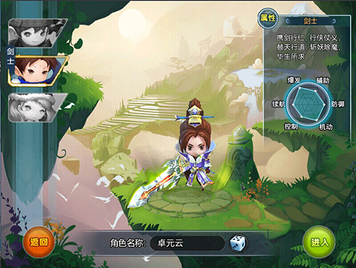 游戏根据能力偏向、战斗类型、技能区别,区分为三大职业。分别为:近战-战士,中远-剑士,远程-炮手。