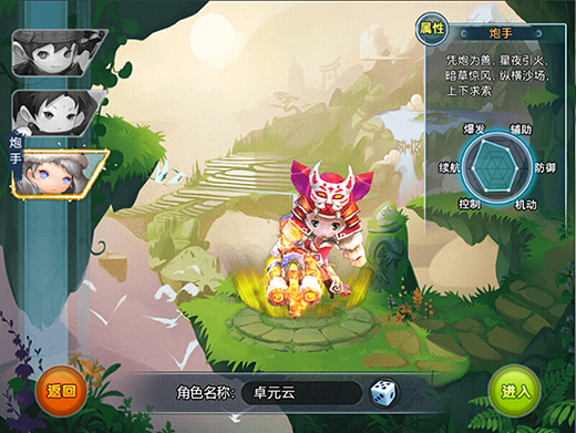 凭炮为善,星夜引火,暗草惊风,纵横沙场,上下求索。擅长远程攻击,特别是放风筝类打法,移动炮台。炮手的攻击高,防御低,在团队中扮演DPS的角色,拥有战神的称号!