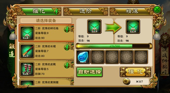 可大幅度提升装备的属性,每次进阶需要消耗对应的图纸并且需要达到一定的强化等级。