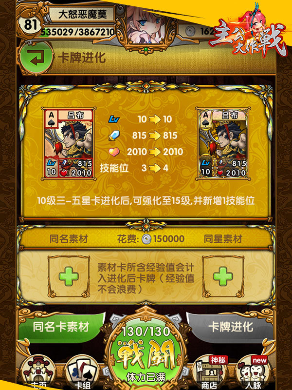 3、进化卡可以强化到15级,除了攻击、生命上升,还能解锁第四技能