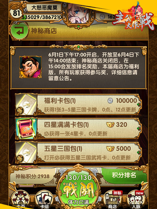 5、战役第4、5层分别有几率掉落4星卡和5星卡。