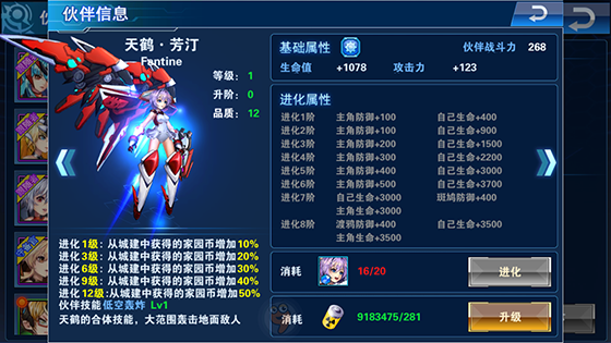 “天鹤♦芳汀”设计灵感来源于一种美丽而优雅的大型鸟类-“鹤”,是长寿,吉祥和高雅的象征。而我们的“天鹤-芳汀”整体色彩着重于红色方面,妖娆而又不失清雅。我们的这个天鹤伙伴一样也是属于“基础型伙伴”,伙伴技能为“低空轰炸”但它的合体技能为一种手动“大范围轰击地面敌人”技能,拥有的独特技能使其在其它伙伴相比之下显得更加圣洁。如果在平时尤其喜欢追求一些高雅而又美丽的事物,那我们的“天鹤-芳汀”你值得拥有!