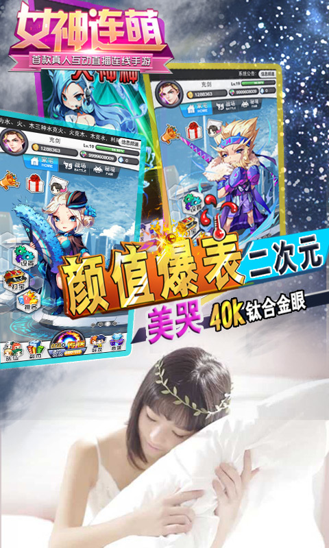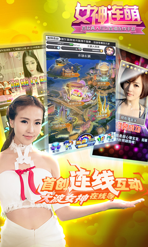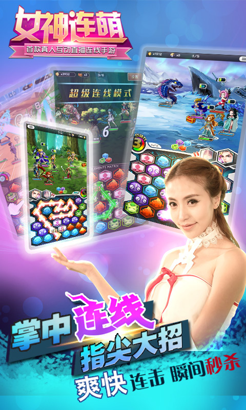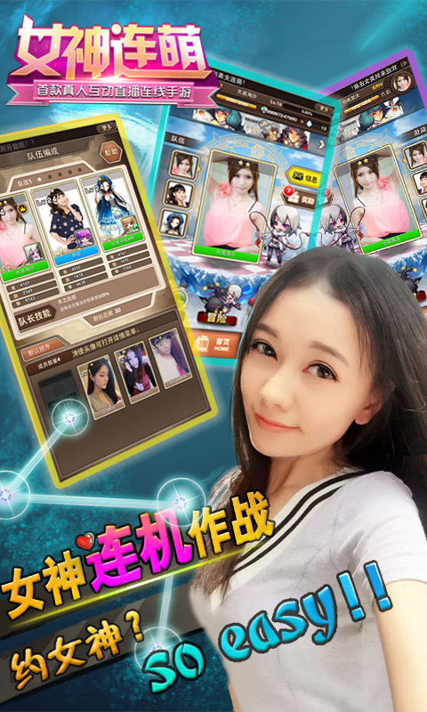 《女神连萌》是首款可与视频主播零距离即时互动的连线手游,告别“呵呵哒”“去洗澡”等令人心碎的文字交流时代,打造随时随地真人直播互动新体验,设有勾搭小游戏、亲密合体作战、团队闯关推图等,使玩家可与女神主 播们进行多体位接触,开创RPG视频互连新次元!