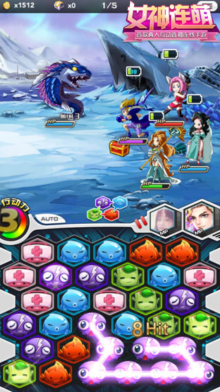 游戏主要玩法是以连接元素矩阵将其消除的方式来操控战场上的幻神攻击敌人。如果对连线还不是很熟悉,也可以尝试自动战斗哦~按下屏幕中间行动力右边的的auto就可进行战斗模式切换。