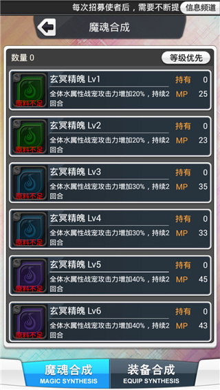 游戏中获得的材料可在“都市”界面中的合成局系统中进行制作,点开可查看所需材料,魔魂和装备可以快速增强队伍的战斗力哦~