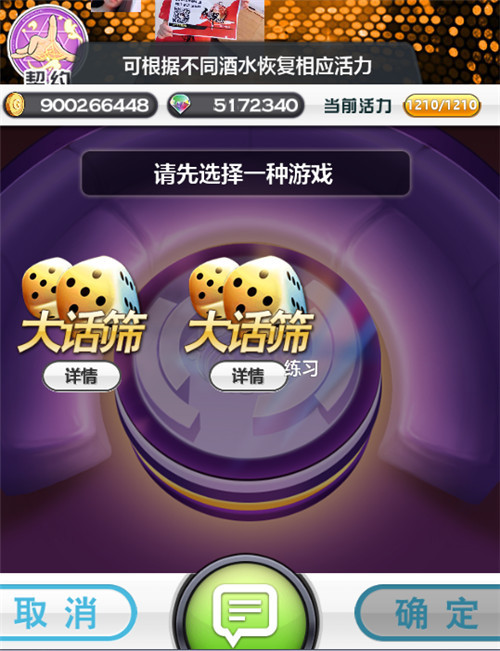 其次,玩家可以选择加入主播创建好的房间,或者自己创建游戏房间等待其他玩家进入,需要注意的是,玩家自己建立房间时,可选择任意的啤酒饮料(加活力的关键哦!)作为赌注。当然啦,玩家也可以通过创建练习模式,此种模式下,并不会消耗任意的道具与金币。