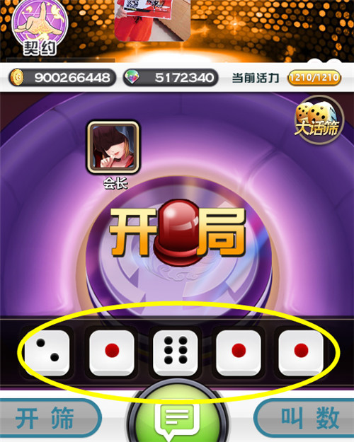 说到大话筛,其实规则很简单!玩家进入房间后,会拥有5个筛子,游戏开始后每个玩家会有3秒摇筛子的时间,摇停或时间到即开启筛盅并随机生成每个筛子的点数,每个玩家只能看见自己的筛子,其他玩家无法看到。
