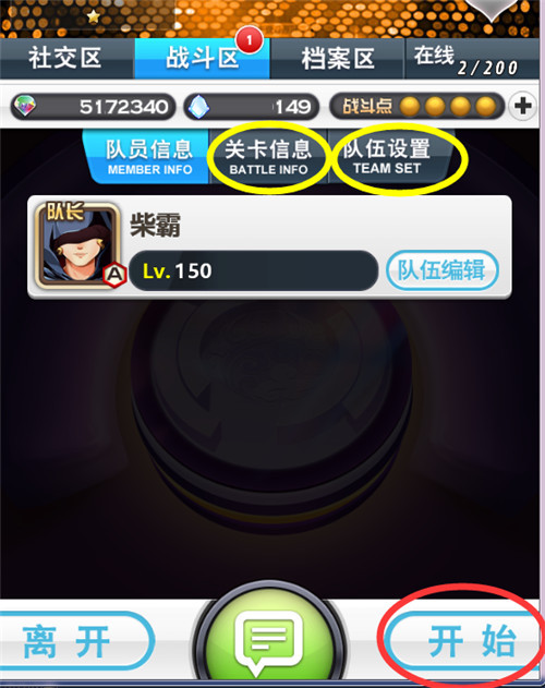 接下去就是选择需要挑战的多人副本地图,选择好后,点击确定,那么你作为队长的队伍就组建成功啦!下图中黄圈中的可自由重新选择多人副本地图以及进行队伍设置。当队伍中所有玩家准备妥当,队长点击右下角的开始按钮即可开始多人副本的战斗啦!