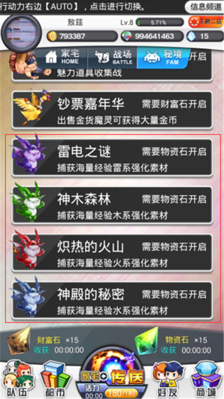 觉醒幻神需要用到觉醒素材,星级越高,需要的素材也越多,那怎么获得幻神觉醒所需的素材呢?你可以通过攻打秘境中的进化素材副本,来获得觉醒素材,秘境每天都会开放不同属性的进化素才副本,来供玩家攻打。
