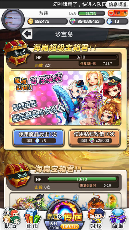 小提示:强化幻神以后幻神的攻击,防御,血量将有大幅提升哦,记得经常强化自己的幻神哦~